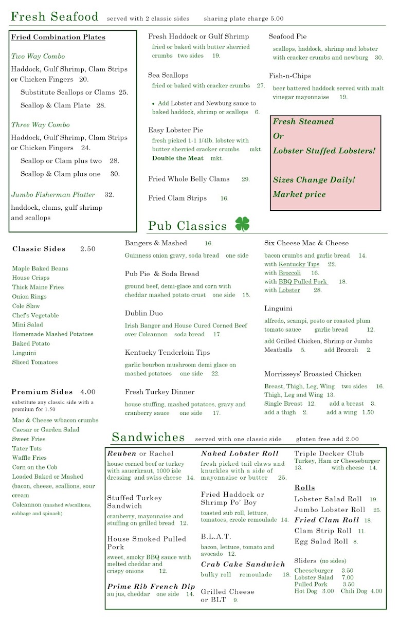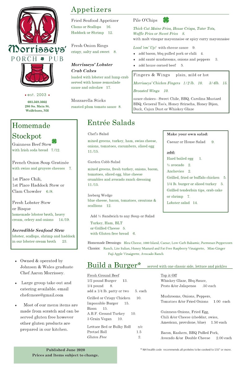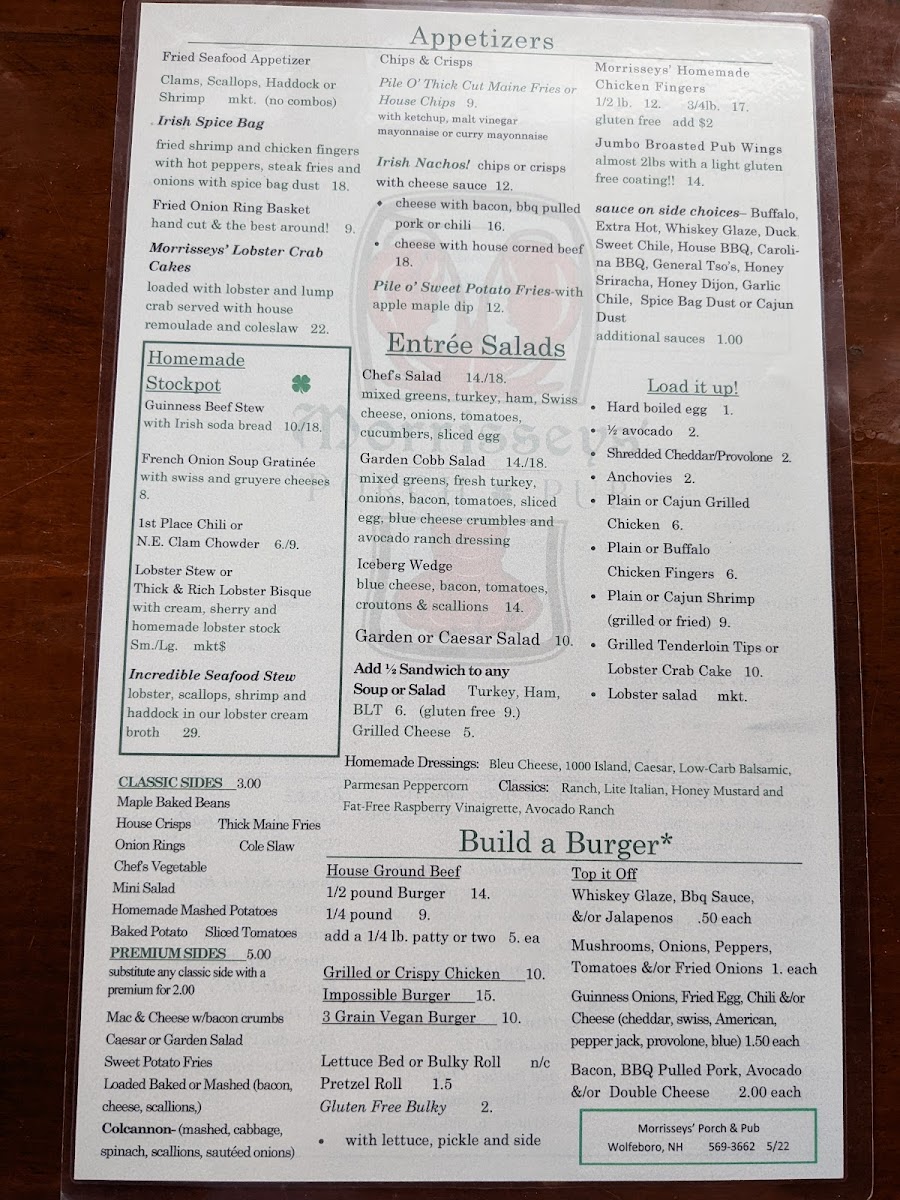 Welcome to Morrisseys' Porch & Pub, a delightful dining spot located at 286 S Main St, Wolfeboro, NH. This charming establishment expertly combines traditional pub fare with warm hospitality, creating an inviting atmosphere that draws both locals and travelers alike.